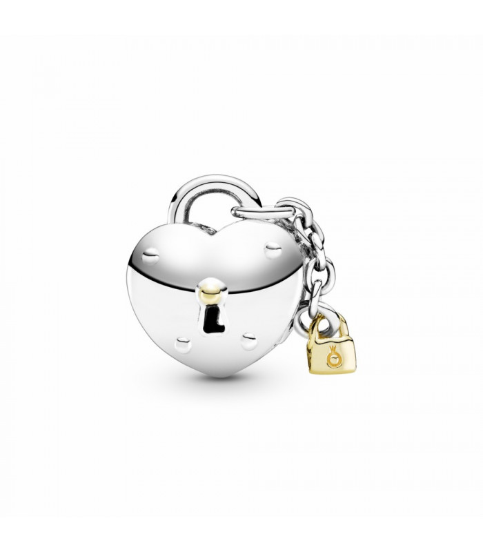 Charm Corazón Y Candado en dos tonos en Pandora Shine una aleación única de metales con un recubrimiento en oro de primera ley de 18k y plata de primera ley adornado con circonita cúbica transparente.