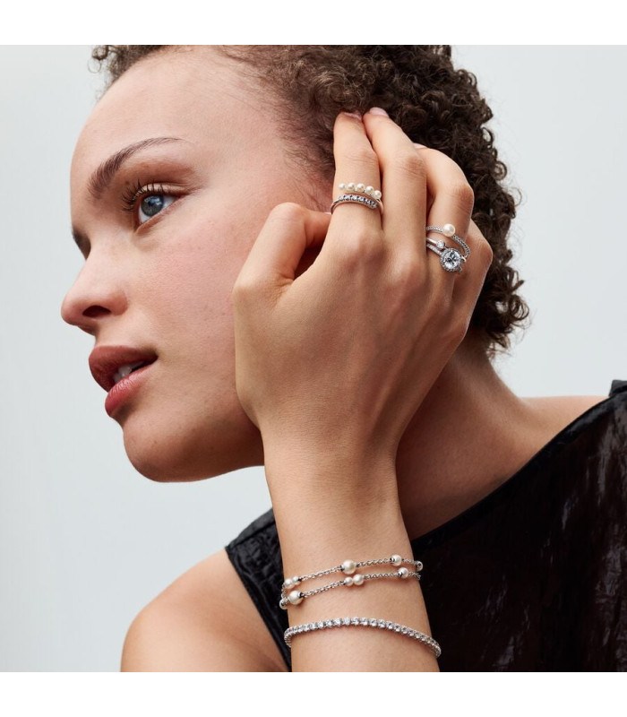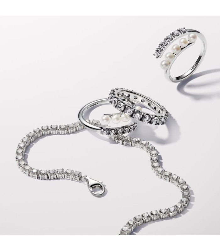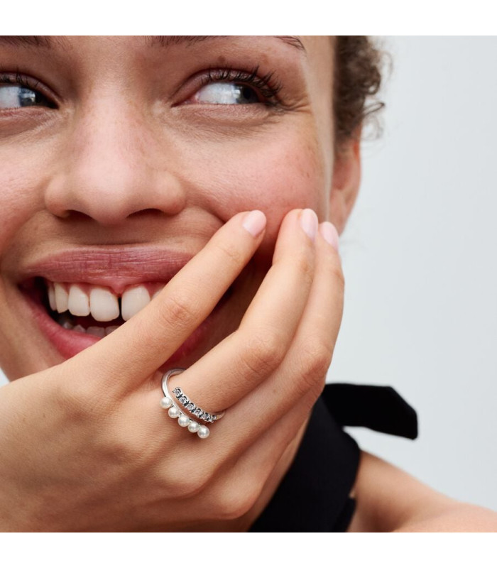 Anillo Abierto Perlas Cultivadas de Agua Dulce y Pavé Pandora - 193145C01