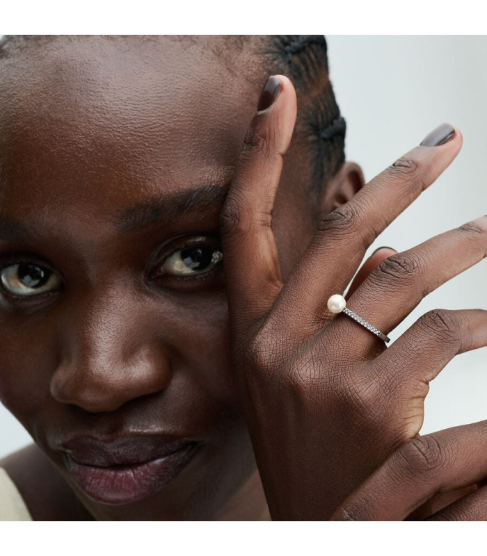 Anillo Perla Cultivada de Agua Dulce y Pavé Pandora - 193158C01