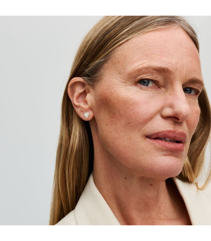 Encuentra la elegancia en nuestros Pendientes de Botón Blanca Floreciendo. Acabado a mano en plata de primera ley, cada pendiente muestra una rosa floreciendo blanca creada meticulosamente con madreperla artificial de bioresina.