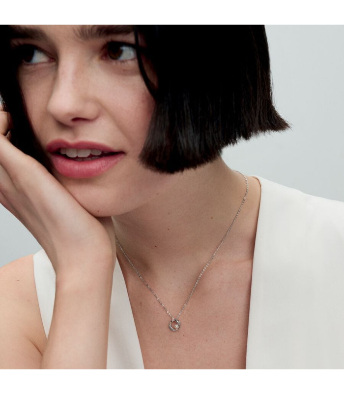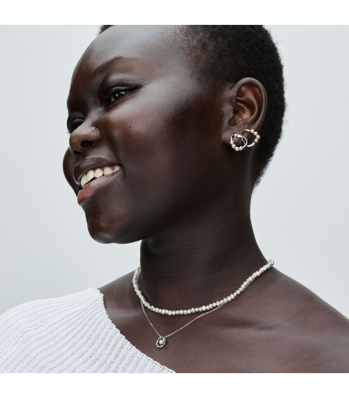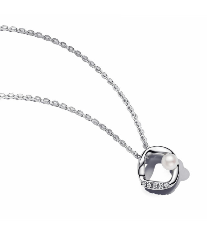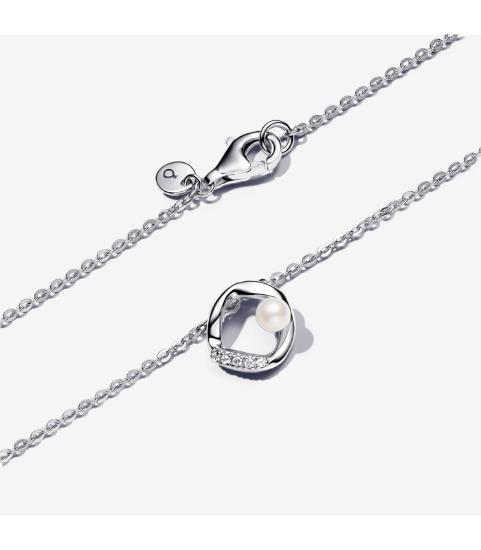 Collar Círculo Forma Orgánica en Pavé y Perla Cultivada de Agua Dulce - 393303C01-45