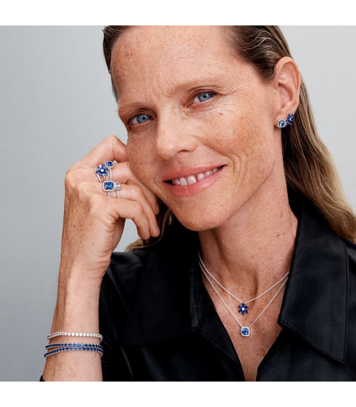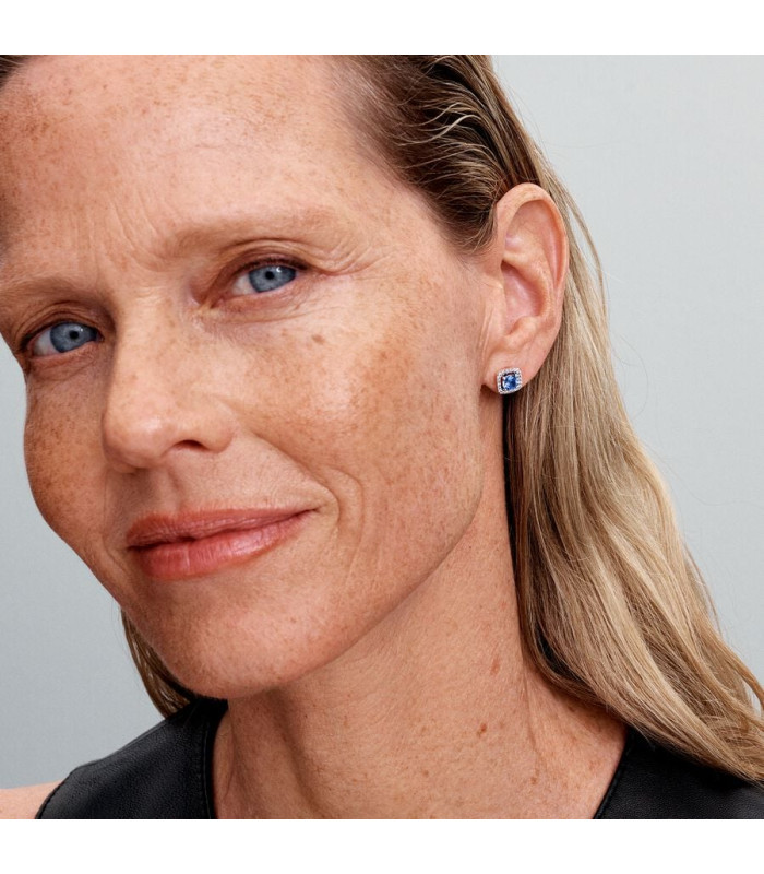 Pendientes Pandora de botón Halo Azul Cuadrado Brillante - 293551C01