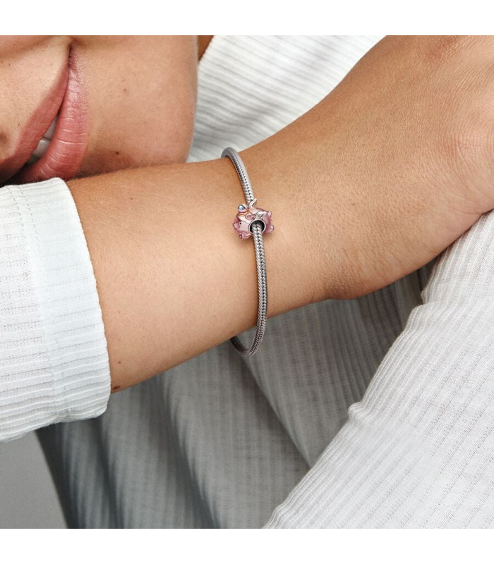 Acabado a mano en plata de primera ley y embellecido con esmalte de color rosa transparente, este charm presenta a un cerdo preparado para alzar el vuelo. Se presenta con un cuerno esmaltado con los colores del arcoíris formando una espiral, alas ranuradas, corazones en relieve en las cuatro patas y el rabo enroscado. Además, en su panza presenta la inscripción "Nothing is impossible" (Nada es imposible), así que usa este cerdo como recordatorio de que puedes hacer cualquier cosa si crees en ello.Compatible conPandora MomentsColecciónPandora MomentsColorRosaTemáticasAnimales y MascotasTipo de productoCharmsArtículo792573C01MetalPlata de primera leyMaterialEsmalteDimensionesProfundidad: 12,4 mmAlto: 9,4 mmAncho: 7,9 mm