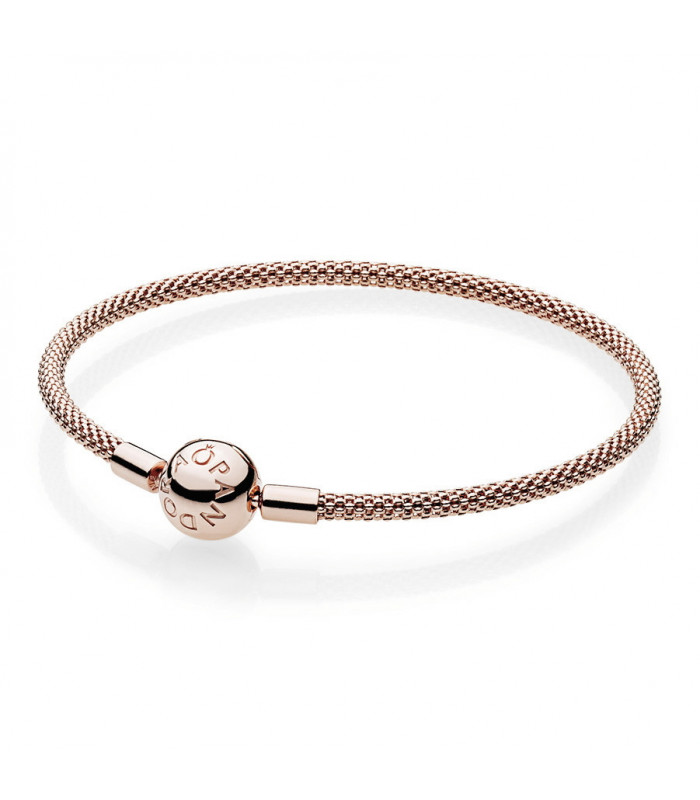 Pulsera Pandora Rose para charm. Una aleación única de metales, con plata de baja aleación y cobre con un recubrimiento de oro de segunda ley.