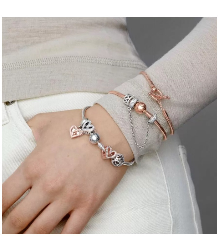 Pulsera rígida en Pandora Rose, una aleación única de metales, con plata de baja aleación y cobre con un recubrimiento de oro de segunda ley.