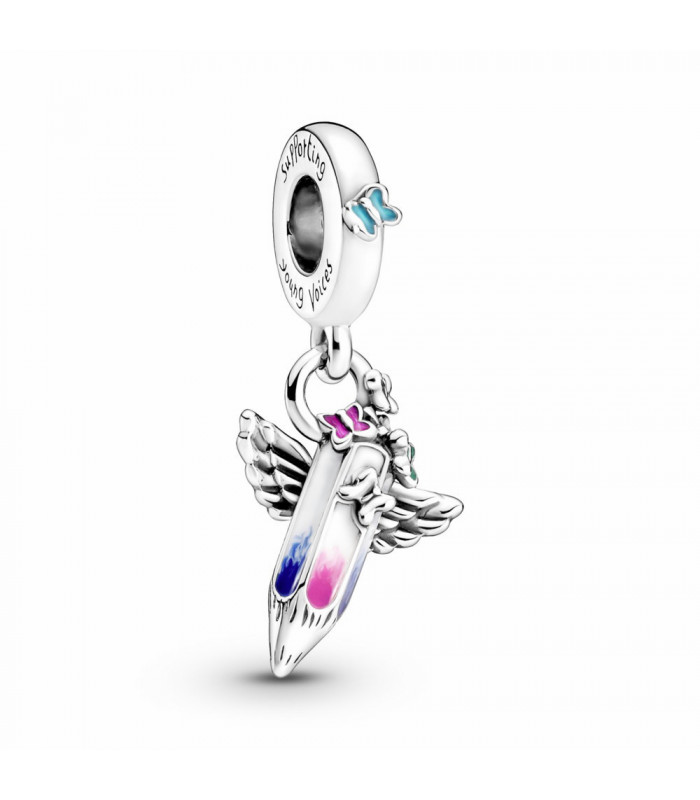 Charm Colgante Pintura Sueños de Futuro en plata de primera ley adornado con esmalte verde, amarillo, rosa, azul y blanco y grabado Supporting young voices