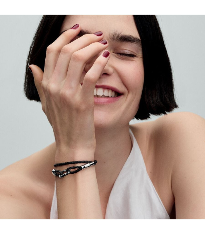 Lo terrenal se funde con lo audaz en la Pulsera Pandora Moments en Cuero Trenzado Doble Marrón