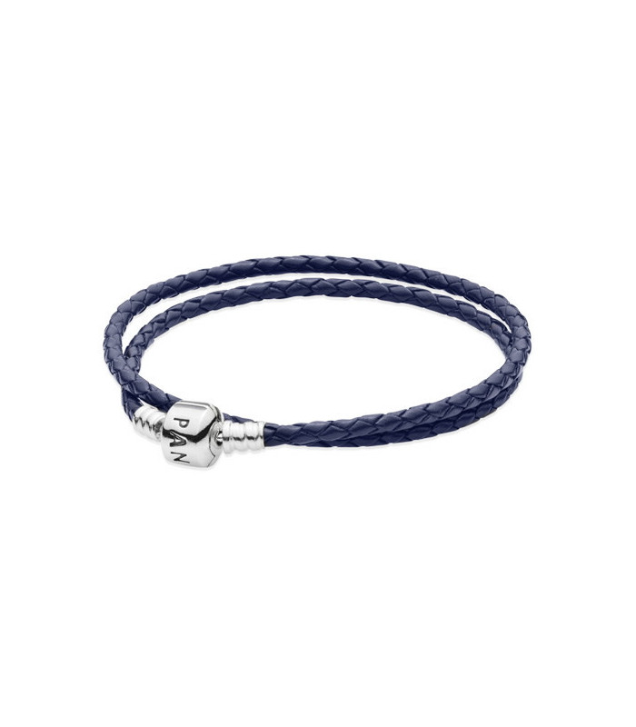 La clásica pulsera de cuero de doble tejido de PANDORA ahora está disponible en el moderno azul oscuro con plata de ley. Ideal para agregar un poco de estilo a tu atuendo, la pulsera se puede usar con hasta nueve dijes de PANDORA.