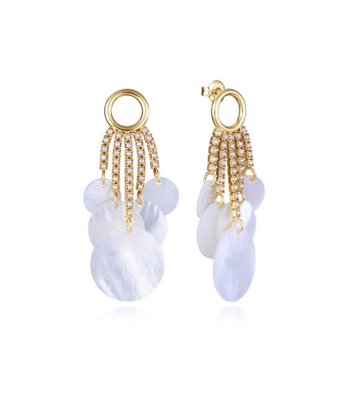 PENDIENTES DE PLATA DE LEY CON BAÑO DE ORO, CON ABANICO DE PERLAS SINTÉTICAS Y MADRE PERLA BLANCA - 13192E100